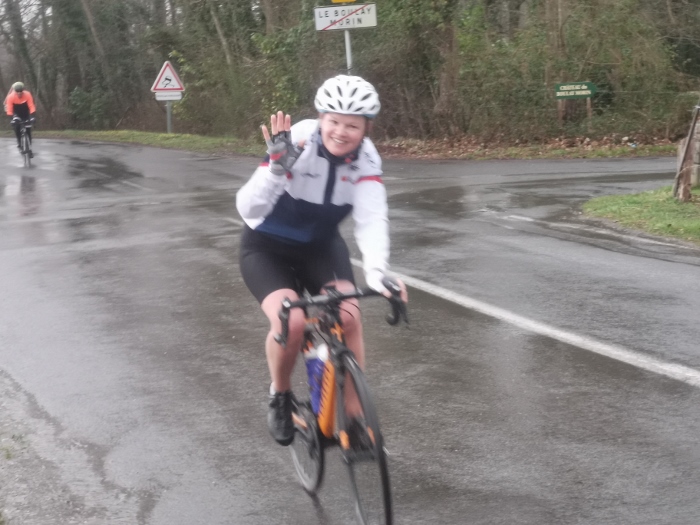 A noter la sortie mixte de dimanche matin, une sortie bien humide avec 6 participantes et 4 participants, une crevaison pour véro.