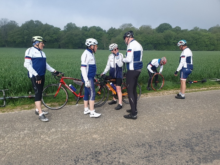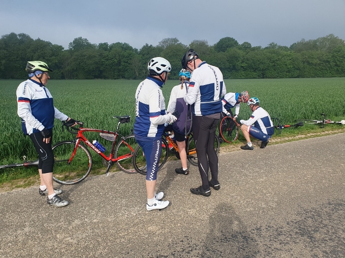 Hélas dans la descente sur Louviers, le même Philippe a de nouveau crevé le même pneu ! Pas de chance.....