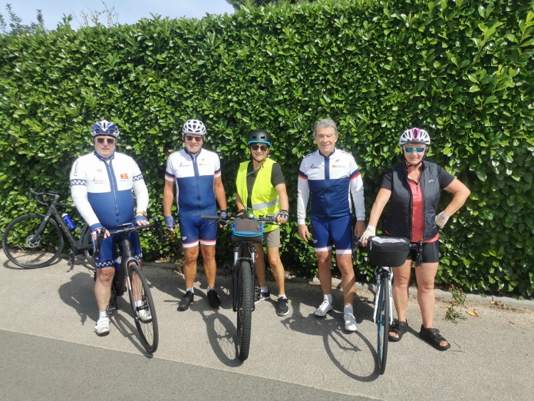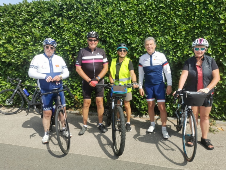ce matin ,et après la sortie en reconnaissance du parcours de 80 kms de notre rando du 14 Septembre effectuée par Bertrand hier après midi avec 3 autres cyclos et du 50 kms par Jean Pierre et Alain , le parcours des féminines prévu au calendrier de ce début Août , a réuni un petit effectif puisque ce sont 2 participantes avec Véro et Brigitte (une potentielle nouvelle adhérente )qui ont parcourues les 58 kms proposés accompagnées de notre courageux Vice Président , de Marco et moi même .Nul doute que la période de vacances pour beaucoup d’entre nous soit a l origine de cette (petite) baisse d’effectifs et c’est bien normal a ce moment de l’été . Un temps très agréable avec un soleil rayonnant et une température idéale pour pratiquer notre sport favori a permis a ce groupe de rouler a bonne allure, et de ne se faire revoir par le groupe des masculins et ses 6 participants partis a 8h30 ( Hervé, Raymond , Jacky, Franck, Alain Mas et Jean claude) qu ’a quelques kms de l’arrivée a Cierrey du coté de Grossoeuvre . Bref , encore un beau dimanche sportif pour le club .