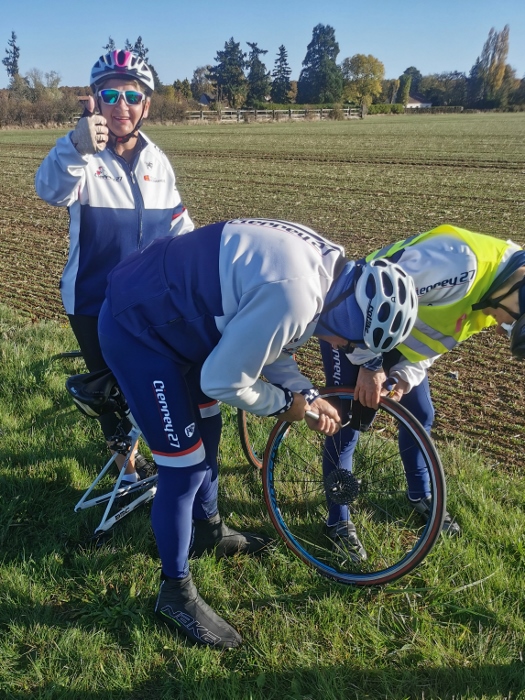 Pour son retour de Tunisie Véro décidée de crever en plein plateau de St André balayé par le vent, réparation effectuée en deux fois la première chambre à air étant défectueuse.