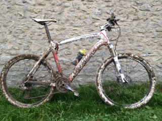 5 Vététistes pour une sortie de 35km en ce dimanche matin. Vu l’état du vélo le terrain devait être bien gras.