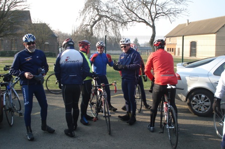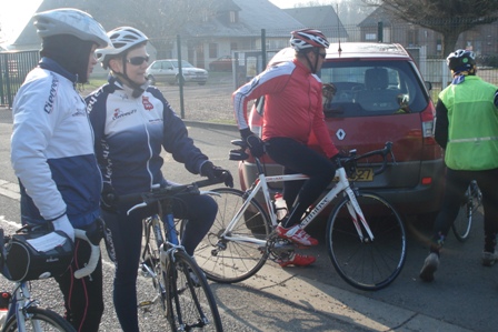 – Lundi matin, 18 cyclos et cyclottes au RDV de 9h30. 14 cyclos sont partis pour un tour en vallée d’Eure et d’Iton. Toujours le froid (moins qu’hier) mais un très fort vent d’est en fin de matinée.