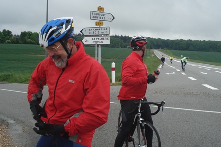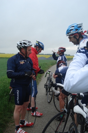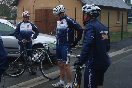 Donc, en ce qui concerne ce dimanche matin, nous étions 12 à nous lancer sur le parcours, rapidement la pluie nous accompagna. A Cailly le p’tit Philippe est obligé de faire demi-tour, ses roues carbones l’empêchant de freiner en toute sécurité, un peu plus loin Daniel l’imita. Après le Louviers le groupe décida unanimement de « couper » en se dirigeant directement sur la cote du vieux Rouen, le parcours se trouva ainsi ‘’allégé’’ d’une quinzaine de kilomètres.