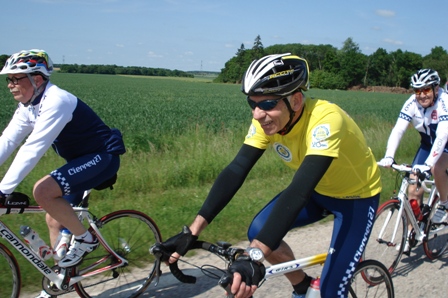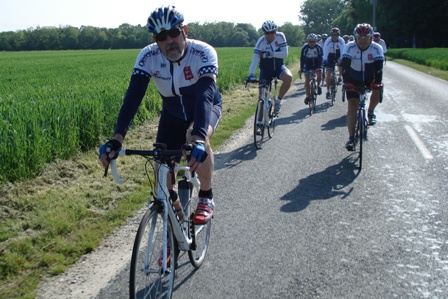 Le dernier à nous rejoindre étant Jeannot sur la route de Beaumont avec un beau maillot jaune en référence à sa première journée de jeune retraité.