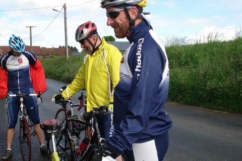Le temps ne nous a pas aidés sur la progression, si nous sommes partis vent dans le dos, le retour n’a pas été la même chanson, de plus quelques averses après la cote de Vezillon dont une belle sur Vernon. Deux crevaisons, titi et Thierry.