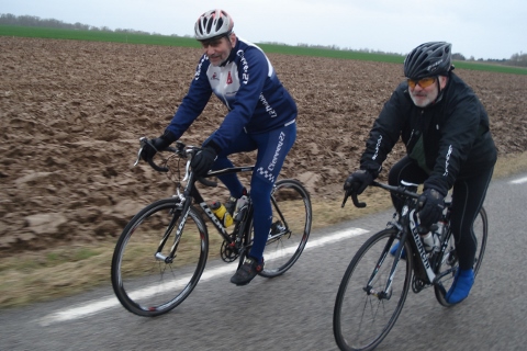 19 cyclos ont effectués la boucle s’une soixantaine de km, sans pluie mais un peu de vent. Parmi ces cyclos la présence de nos deux féminines inscrites à notre challenge de la grande traversée des Alpes fin juin. Le « petit » Grégory s’est fait remarquer avec une crevaison.