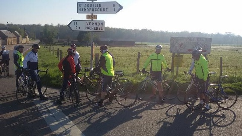 Entre temps, vers Giverny, le groupe avait intégré la Crière’s family (Christian l’oncle -a priori en paix avec son genou- et Philippe le neveu -que l’on retrouve avec grand plaisir.... et en forme, au sein du groupe sur son magnifique vélo) puis, un peu plus loin, Christian "le Réunionnais" vers Cravent.