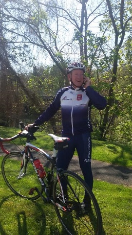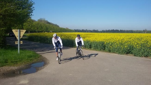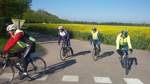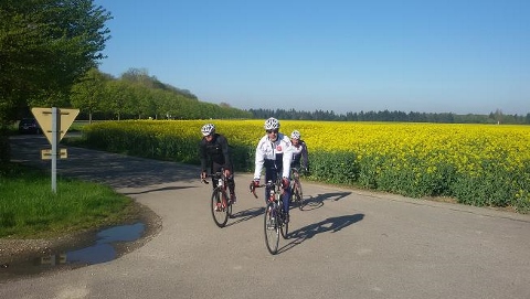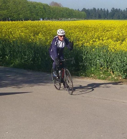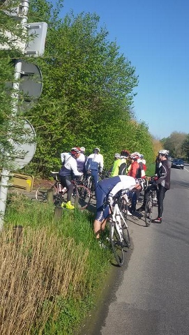 En ce dimanche de 1er mai, il fallait quitter la douceur de la couette pour retrouver le petit frimas du matin. Une petite vingtaine de cyclos au départ à 8h dont Karine toujours aussi vaillante.
