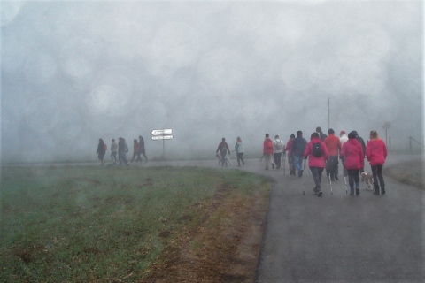 Dimanche matin Christian nous avez préparé un parcours au départ de Jouy sur Eure via les 3 étangs, La Ronce, La Cornouilleraie, merci à lui pour son organisation, il a mis la barre très haute…. café et croissants attendaient les 26 marcheuses et marcheurs avant de s’élancer sur les chemins, le brouillard présent toute la matinée ne nous a pas empêchés de transpirer dans les montées.