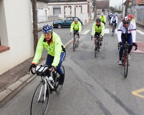 Le couple présidentiel parti de Saint-Sé dès potron-minet croisait le groupe déjà fort de 16 unités au moment où il s’élançait de Cierrey pour ce parcours de 77 km sans difficultés particulières. Dans Evreux , près du pont d’Harrourd, nous attendait notre photographe patenté (et néo Papy) avant que cette joyeuse troupe ne prenne la direction des Baux Sainte Croix par Arnières/Iton. Ensuite, ce fut un labyrinthe de routes de campagne (dont le dernier passage du club sur ce parcours remonte à 8 ans !) on ne peut plus bucoliques (et quelques fois bien crottées avec la pluie de la veille) vers les alentours de Conches, Breteuil/Iton et Damville. Une magnifique vue sur le château de Gouville près du Lycée Agricole de Chambray a été immortalisée par Philippe peu de temps avant qu’un jeune brocard ne coupe la route une cinquantaine de mètres devant le paquet.