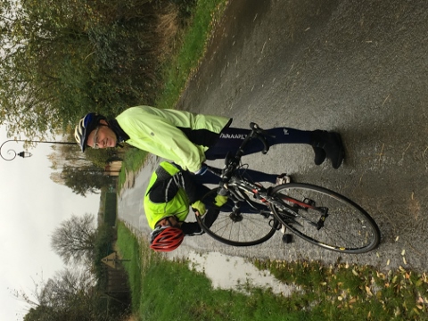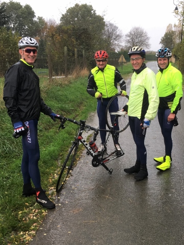 Excellente prévision pendant 15km puis...la pluie s’est invitée dans la côte de Berengeville à grand renfort de "seau d’eau" et d’un violent vent de face : tous à l’abri derrière William !! Nous sommes meilleurs cyclistes que prévisionnistes météo !!