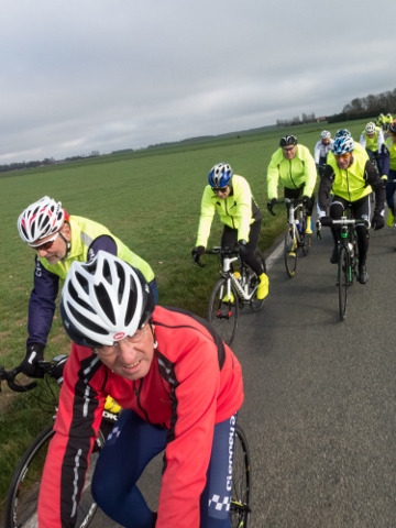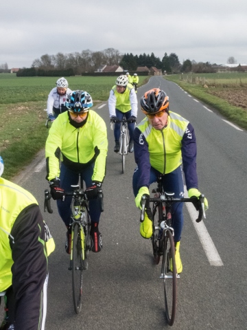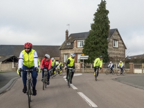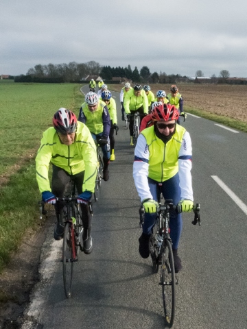 Quelques éléments reprenaient le guidon et retrouvaient le groupe après la trêve des confiseurs et avant l’ultime échéance de fin janvier généralement admise pour présenter ses voeux. En ce samedi après midi assez frais, une quinzaine de participants dont 2 de nos féminines (Céline et Véronique) s’élançait vers Guichainville, puis la forêt entre les Baux Sainte Croix et la Bonneville où se dressait la côte conduisant vers la Bretonnière. Puis direction la Croisille et Glisolles avant de retrouver la bosse de la Bochelle et rentrer vers Cierrey par Grossoeuvre et Prey. Le vent nous a accordé un peu de répit, ce qui a largement accru notre plaisir de pédaler (il faut rappeler que les cyclistes de mercredi dernier ont essuyé des rafales de plus de 70 km/h qui avaient laissé quelques traces dans les organismes !).