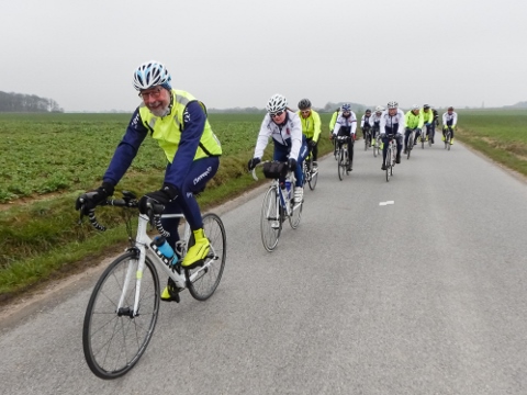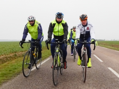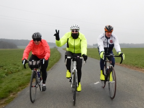 Quelques photos de la sortie club de ce samedi 17 mars (24 participants), le 100 km de début de saison réalisé dans des conditions polaires.