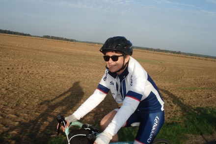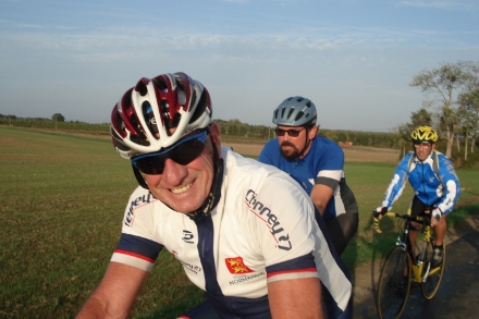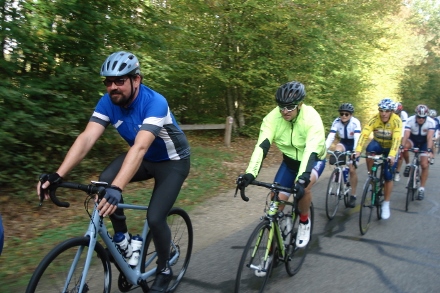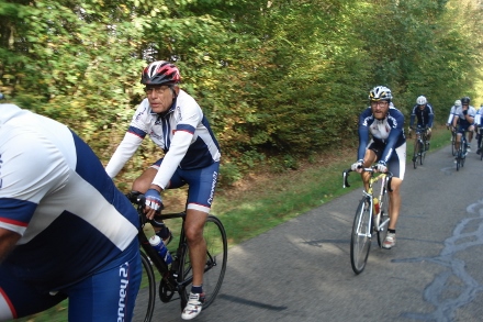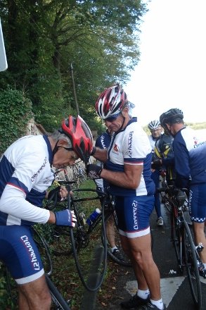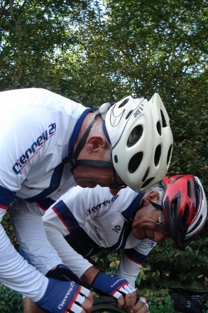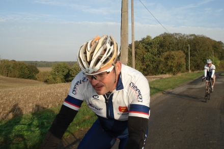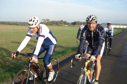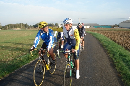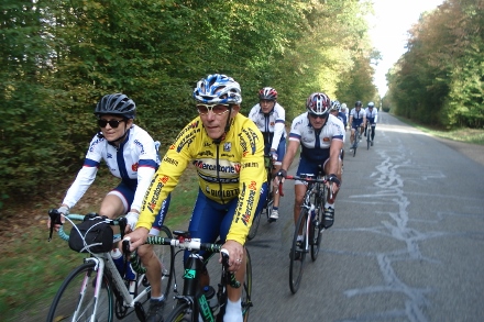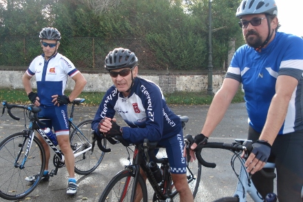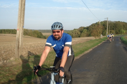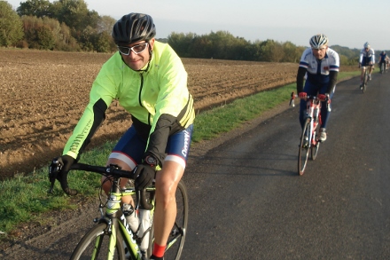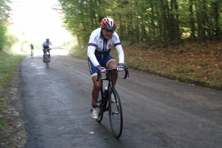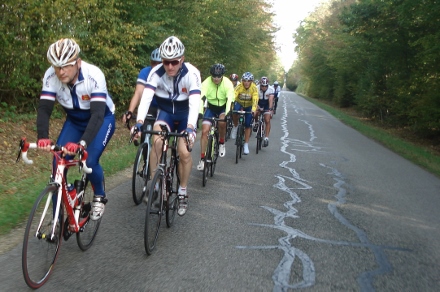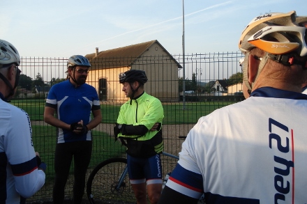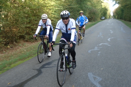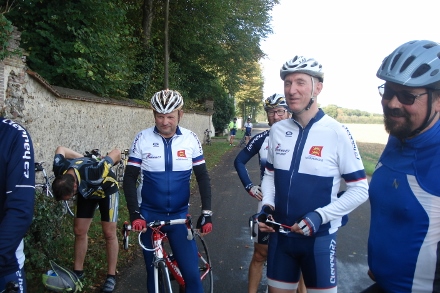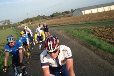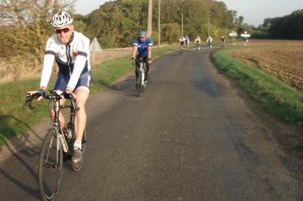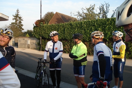 Beau soleil automnale en ce dimanche matin pour ce groupe de 16 cyclos dont Isabelle. Jean marie a tenu à conserver son leadership en nombre de crevaison.