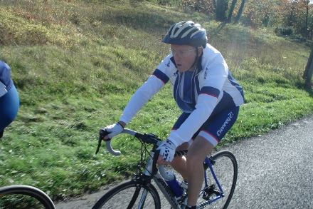 BLEU : comme le train de seniors le long de l’Eure en passant par Acquigny avec en tête de peloton nos deux mobylettes électriques qui avait mis le régulateur sur 25 km/h….Ah cela sent la fin de saison !!