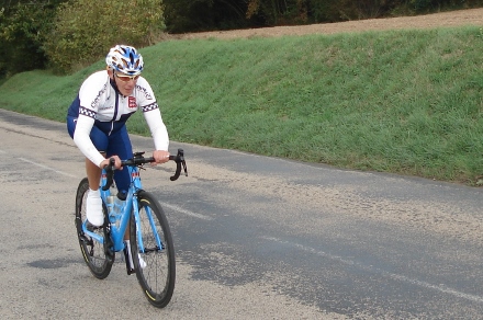 BLEU : comme l’arrière du casque de Philippe Gi.. toujours en tête dans les côtes !!