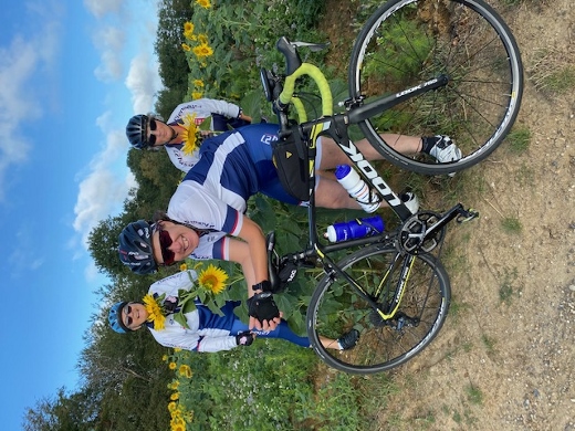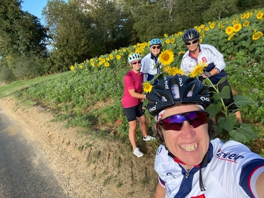 Le nez au vent, nous sommes parties Danielle, Véro, Nadine et moi pour un beau parcours officiellement de 62 kilomètres qui fut semé de rebondissements, de plein de petits ponts que Nadine aime tant et de beaux tournesols.