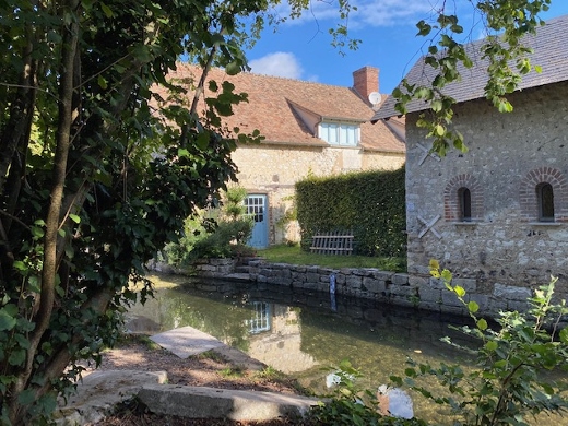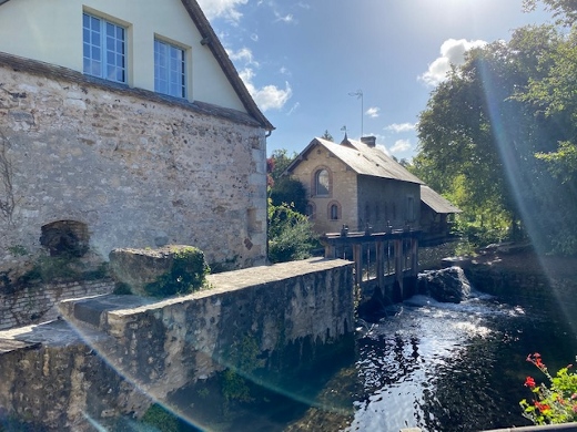 A Fontaine sous Jouy voilà notre Véro nostalgique de ses sorties accompagnées de ses mouflets du boulot qui nous dit : « les filles vous avez 5 minutes, je connais un superbe chemin par ici vous allez voir c’est trop beau ! » Allons-y allons-zo mais comme vous le verrez sur les photos, c’était un chemin peu fréquentable à vélo de route… et oh les cales ;-( !!! Mais Véro nous a promis de nous raconter une belle histoire à côté du moulin alors on y va de bon coeur. C’est vrai que c’était beau, ça vallait bien le détour ce p’tit coin de paradis comme dans la chanson !! Voici néanmoins arrivés les premiers tournicotis pour retrouver la trace gps à la sortie de ce chemin enchanteur, et même si dans les contes, le temps passe vite, parfois il arrive que les 5 minutes se transforment en 1/2 heure !!).